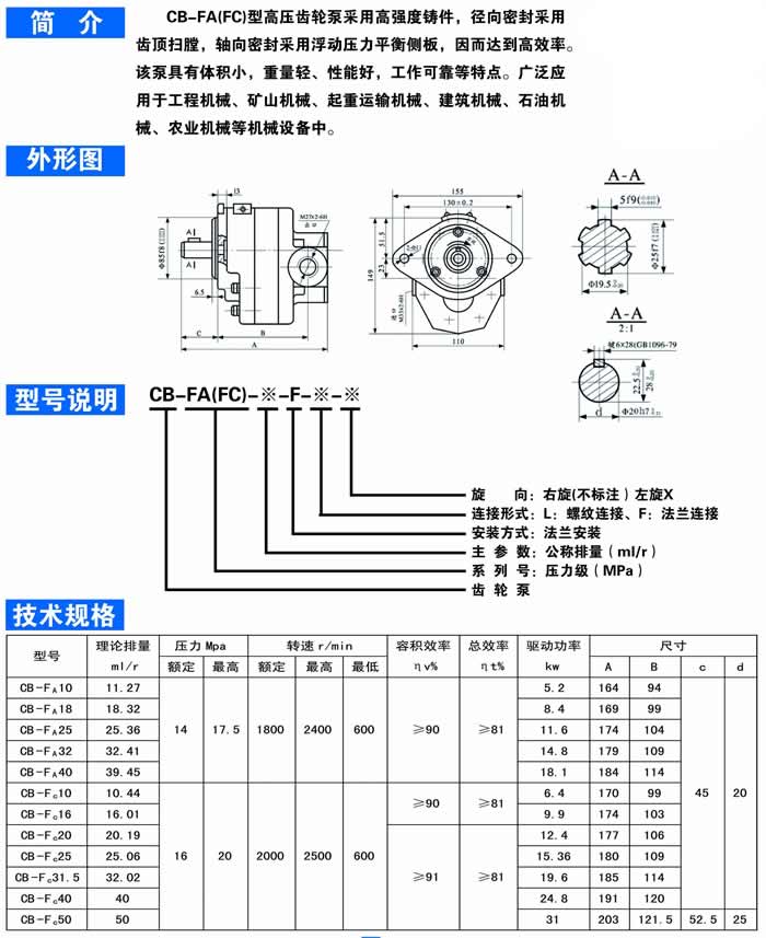 CB-FA型高压齿轮油泵