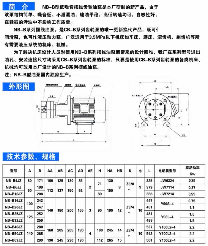 NB-B低噪音内齿合摆线油泵电机组
