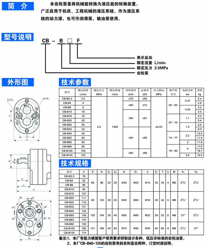江苏双向泵阀有限公司:创建于1988年企业简称【泰兴市齿轮油泵厂】专业生产各种规格的高中低压齿轮泵,广泛应用于机床、减速机、齿轮箱、液压机械、稀油站,润滑设备,工程机械、矿山机械、起重运输机械、橡塑机械、注塑机械、胶合板机械、轻工机械、纺织机械液压系统中以及冶金、船舶、油站等领域。产品检测设备齐全、产品质量稳定可靠,专业生产CB-B系列齿轮油泵、CB2系列齿轮油泵、CB2-B系列齿轮油泵、CB3系列齿轮油泵、NB-B系列摆线泵、BB-B系列摆线齿轮泵、HY01系列齿轮油泵、齿轮油泵电机组,SNBY系列双向润滑油泵、SXF双向润滑油泵,R12-1润滑油泵、2KF系列大流量双向润滑油泵、CB-B系列低噪音大流量齿轮泵、CB-FA型、CB-FC型高压油泵、YB1叶片泵、联轴器、输送机油泵、打结刀以及特殊非标齿轮泵定做。公司宗旨是“以科技求发展,以质量求生存,以客户求效益,力求以先进的生产管理和严格的质量要求,向用户提供优质的产品和满意的服务”。 本公司坚持“,以人为本,以诚信为本”,做到质量第一,信誉第一,用户第一,服务第一。时间将做出保证:“泰兴双向液压值得信赖”。欢迎国内外工商界人士前来考察,洽谈,合作,共图发展.销售热线:0523-87491508 传真:0523-87497508