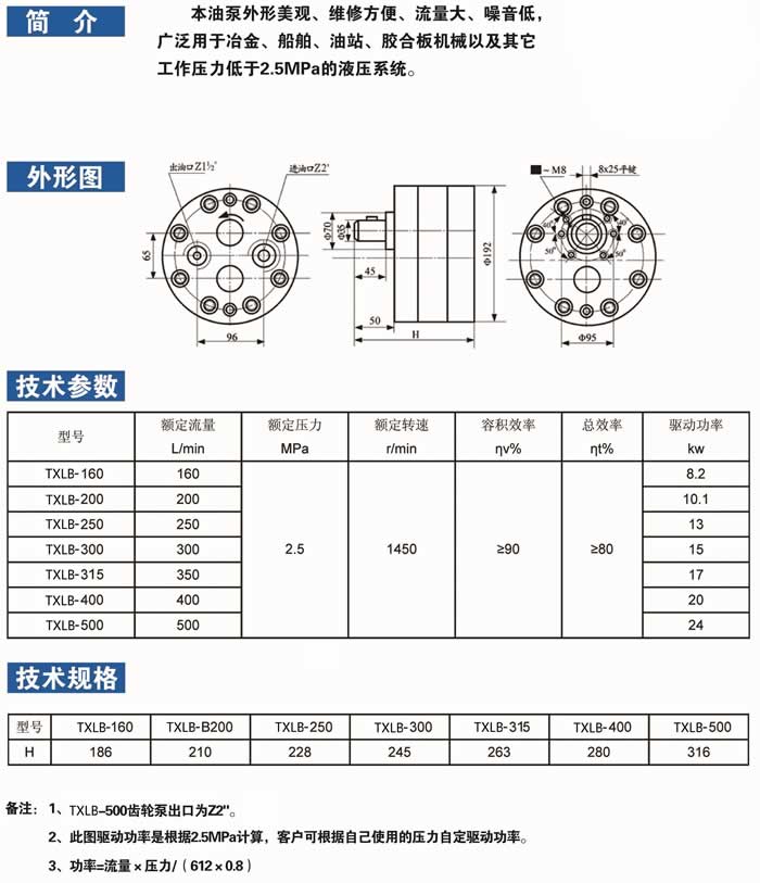 TXLB1~60500低噪音圆形大流量齿轮泵